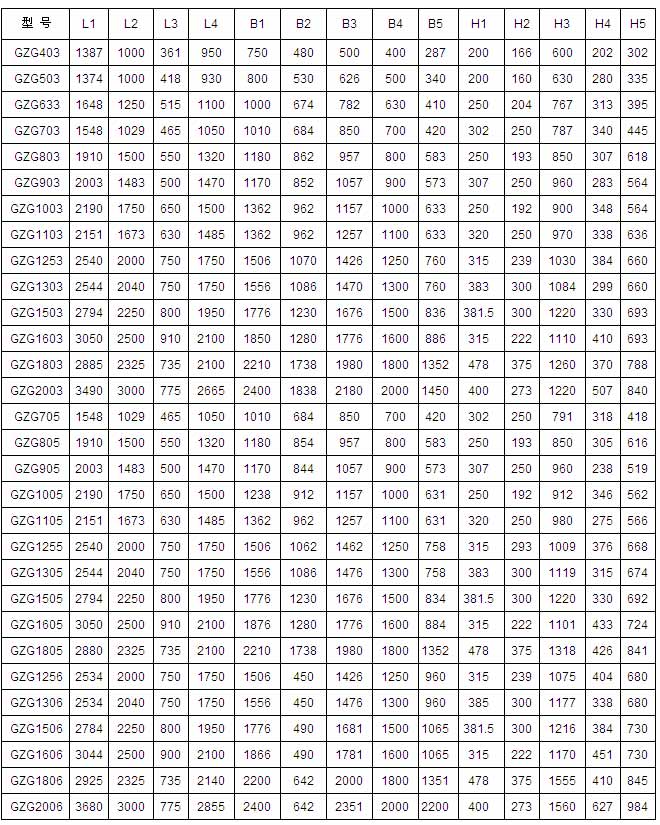 GZG1255 | 1250×2000×315 | 500 | 700 | 350 | 5 | ZG618 | 2×2.97 | 2×1.1 | 1002 | |||